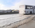 Bakıda ticarət mərkəzinin qarşısında suyun içində yol: Piyadalar təhlükə ilə üz-üzə qalıblar